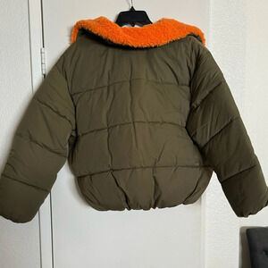 Urban Outfitters Army Green Puffer Jacket Duckie Faux Shearling Collar Coat NWOT