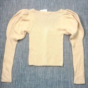 NWT Urban Outfitters Ashley puff sleeve cardigan in neutral. Front button closure, long sleeve, deep scoop neck, pleated puff shoulders.