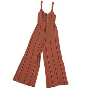 Urban Outfitters Ashley Striped Button-Through Tie-Back Jumpsuit - Peach - M