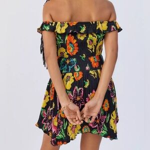 Urban Outfitters Aubrey Floral Scrunched Off The Shoulder Mini Dress New Boho XS