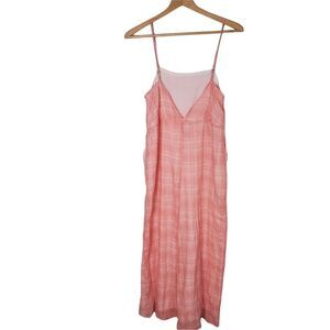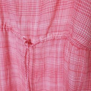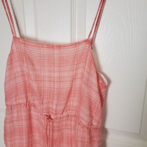 Urban Outfitters Audra Gingham Jumpsuit in a peach color. Made of 100% cotton so it's light and flowy, perfect for summer. Has a drawstring waist, adjustable straps, and pockets. Great used condition with some threads starting to become a little loose, though this should not affect the jumpsuit too much.