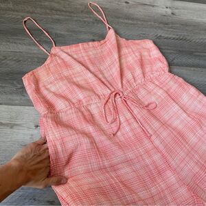 Girly yet comfortable Audra gingham plaid jumpsuit from Urban Outfitters. Plaid is a soft red and white print. It has adjustable spaghetti straps, pockets and an adjustable waist tie. Fully lined with white material. Light weight. Size medium, relaxed fit. Please see photo section for approximate flat measurements + my model stats for fit reference. Material: 100% cotton. Note: missing sizing tag.