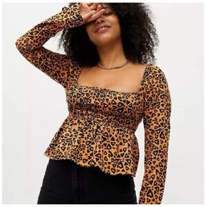 Urban Outfitters Ava Smocked Heart Square Neck Babydoll Top M