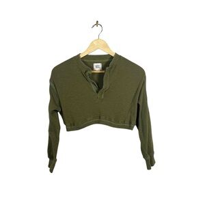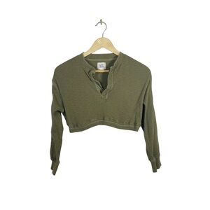 Urban Outfitters BDG Cropped Waffle Knit Henley in Olive Green Size XS