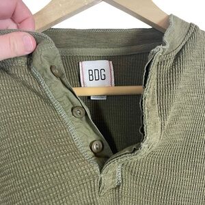 TAGS: urban outfitters, uo, bdg, knit, waffle, thermal, henley, crop, cropped, casual, streetwear, travel, classic, minimalist, green