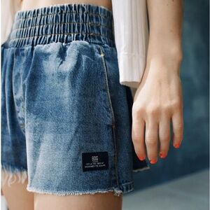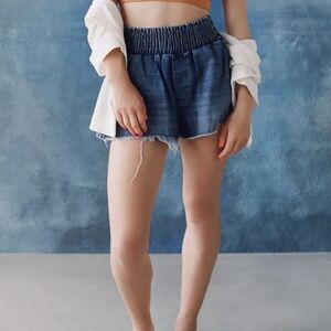 Urban Outfitters BDG Pull On Denim Boxer Shorts. Styled after shorts worn by boxers. High rise. Relaxed fit. 3-inch tall elastic waistband. Wider leg openings with a flared silhouette. Pull on styling with no fly. Front slash hand pockets. Rear patch pockets. Side panel details. Cut off, frayed edge hem. Small BDG fabric logo patch on left leg. 100% cotton. Machine wash.