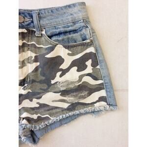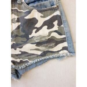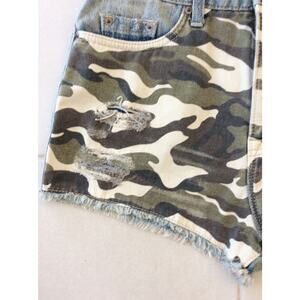 Urban Outfitters BDG High Rise Dree Cheeky Camo Distressed Denim Cut Off Shorts
