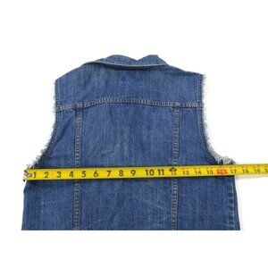 BDG Jeans Blue Denim Frayed Distressed Vest Button Closure Pockets 100% Cotton Womens Size Medium EUC