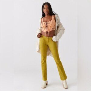Urban Outfitters BDG Elodie Slim Corduroy Pants New 28 Waist Pea Green 70s Retro