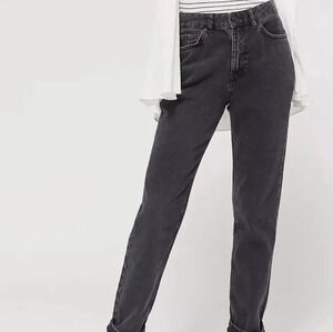 Vintage-inspired high-rise BDG Mom jean crafted from washed-black rigid denim that will soften more and more over time. Cut high at the waist, relaxed through the hip and tapered through the leg so you can wear them long or rolled. 5-pocket styling with a zip fly. Only at Urban Outfitters.