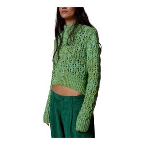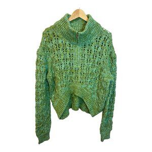 Urban Outfitters BDG Killian Quarter Zip Sweater Large Green Chunky Knit Cropped