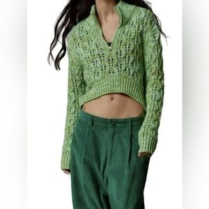 Urban Outfitters BDG Killian Quarter-Zip Pointelle Green Knit Sweater Sz M NWOT