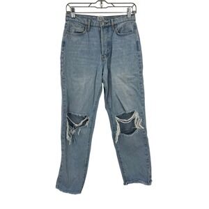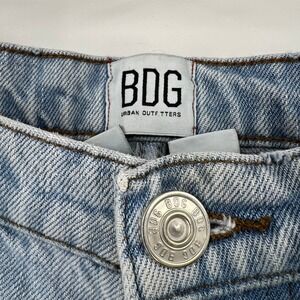 Urban Outfitters BDG light / medium wash distressed fringe knee cutouts, slim straight fit. Women's size 27 waist.