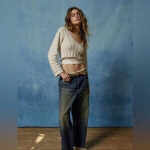 ***NEW, only worn once - SOLD OUT and no longer available. BDG Ivory v-neck pullover sweater with stripes in size US Women's Medium.