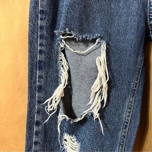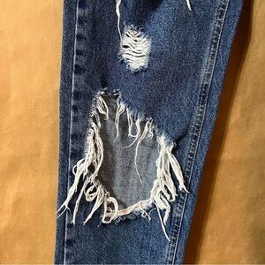 Tags: Mom Jean. High Rise. Tapered. 90s style. Vintage Inspired. Y2K. Distressed. Destroyed. Denim. Rigid.