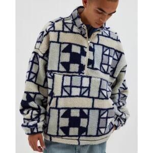 NWT Urban Outfitters BDG Scotty Printed Fleece Half-Zip Mock Neck Sweatshirt Neutral