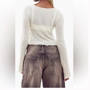 Urban Outfitters BDG Sheer Boatneck Lettuce Trim Bell Sleeve Sweater Small