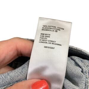 Size 29. 100% Cotton. Inseam 30 inches. Waist 16 inches measured flat. Rise 12 inches. Small hole on the top of the back pocket shown in picture. Light wear on the back hems. Good used condition!