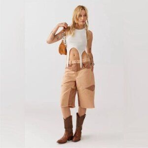 Urban Outfitters BDG Skater Girl Denim Short Seamed Sand Tan Brown New 28 Waist