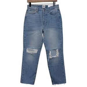 Urban Outfitters BDG Slim Straight Denim Jeans Size 28 High Waisted Distress Knees Light Wash