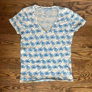 Urban Outfitters BDG Soft Thin Short Sleeve T-Shirt Bicycle Pattern Blue Small