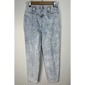 Retro from waist to ankle, this vintage jean is acid washed allover - only one is available for purchase by one lucky customer, so get it or regret it! High-waisted fit in an acid washed denim with side pockets and front pleats in a tapered silhouette. Finished with belt loops and zip fly.