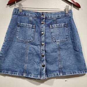 Urban Outfitters BDG Women's Mini Button Up Medium Wash A-Line Jean Skirt Sz M