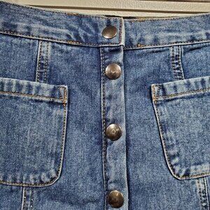 Urban Outfitters BDG Women's Mini Button Up Medium Wash A-Line Jean Skirt Sz M. Please note all measurements are approximate.