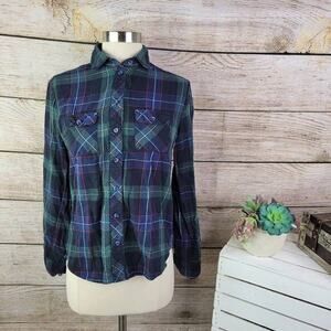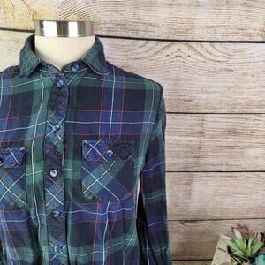 Urban Outfitters BDG Women’s Plaid Western Collared Button-Up Shirt Blue Green S