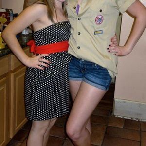 Cute little party dress! Upper back is smocked (last pic) with elastic so it's fitted, but comfortable. Wore it as Minnie Mouse in the picture, doesn't include red sash. Only worn a few times, no stains/fading. I'm 4'11" for reference.