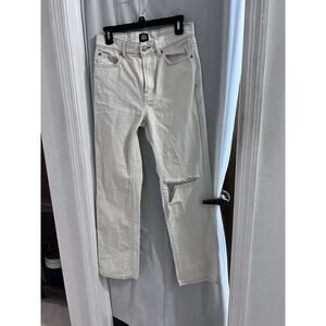 Urban Outfitters Bdg High Ride Mom Jeans In Ecru/ivory Distressed Jeans Brown 27