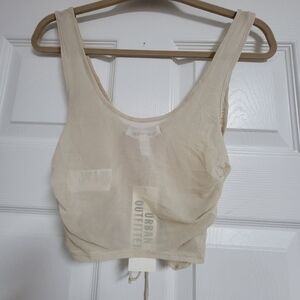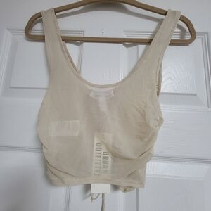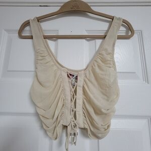 Stylish beige crop top. Features lace-up front. Perfect for casual wear.