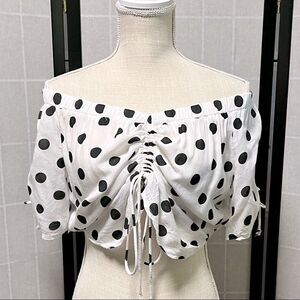 Urban Outfitters Bianca Polka Dot Retro Off Shoulder Crop Top