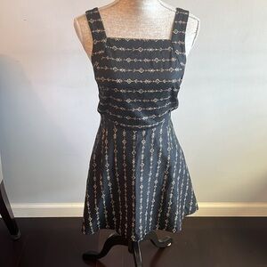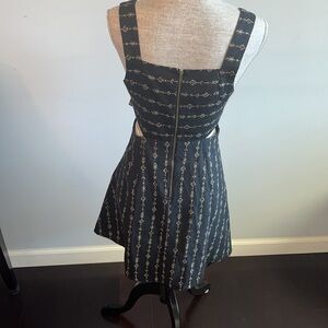 Urban Outfitters Black Cut Out Skater Dress Black boho print dress with side cutouts with a fit and flare silhouette. Dress has a zipper closure at the back. Runs small.