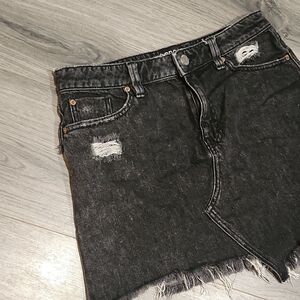Urban Outfitters Black Distressed Mini Denim Skirt, no flaws outside of factory made. Fun piece that can be styled so many ways. Waist flat is 14.5" and 14" long.