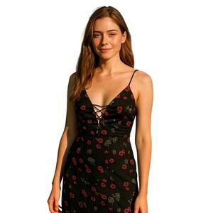 Urban Outfitters Black Floral Lace-Up Slip Dress (XS)