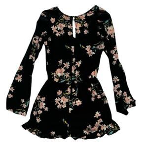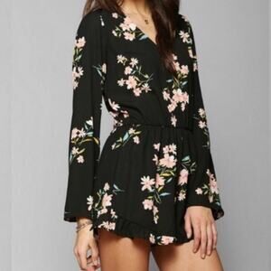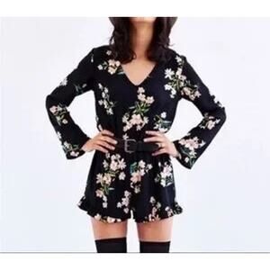 Urban Outfitters Black Floral Shorts Romper XS Playsuit Boho Cottage Festival