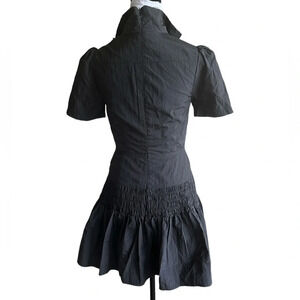 Urban Outfitters black nylon ruffle drop waist mini dress! Perfect for any occasion, this dress combines elegance with a trendy silhouette.