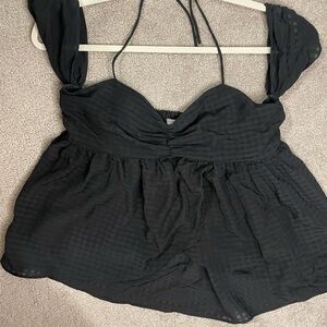 Urban Outfitters|| Black Over the Shoulder Flowy Top Blouse, Tie Neck Detail M