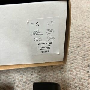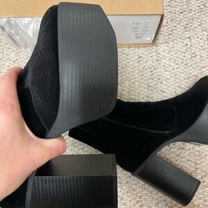 Chic black platform shoes. Sleek design with high block heels. Perfect for a bold look.