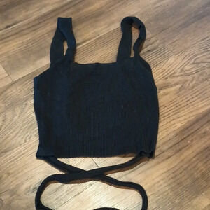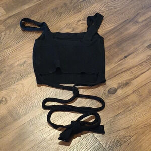 Urban Outfitters Black Ribbed Tank Crop Top With Belly Waist Bow A3