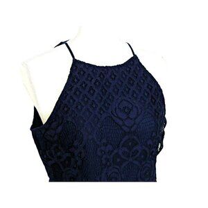 Urban Outfitters Black Swan Lace Eyelet Crochet Halter Dress Navy Blue Size S/M