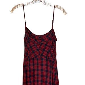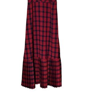 Urban Outfitters Black/Red Plaid Maxi Dress Pleated Bottom Ruffle Sz S