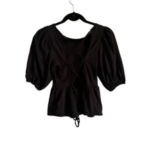 Urban Outfitters Black Rosaleen Strappy Tie Open Back Peplum Top SZ Small
