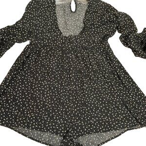 Urban Outfitters Black/White Floral Long-Sleeve Romper Size L