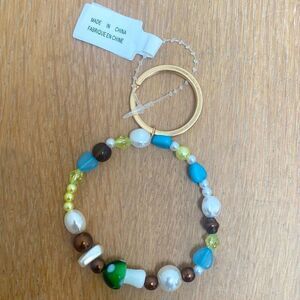 Urban Outfitters Blue & Green Multicolor Mushroom Beaded Keychain Bag Charm
