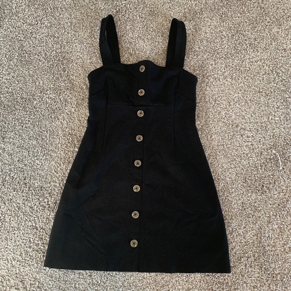 Worn once! Excellent condition. Mini dress with spandex like feel, but stays in place and is generally more forgiving. Hugs curves like a dream and provides enough support to go braless if you want. Buttons are decoration only but provide a cute texture to the dress. Can be worn in colder temperatures with layers or on its own, looks fabulous either way.