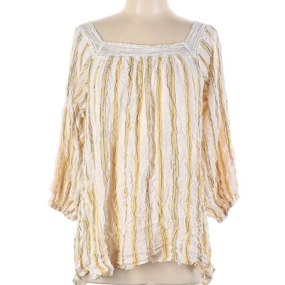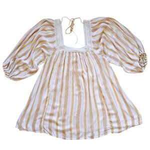 Urban Outfitters Boho Tunic Top M 3/4 Sleeve Striped Blouse Flowy Casual