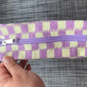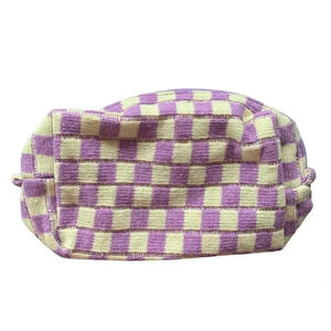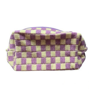 Store your makeup, brushes, pencils and more in this retro-cool pouch by Bougie. Crafted from knitted cotton, this pouch features an allover checkered motif and is complete with a waterproof liner to protect against spills. Finished with a zipper closure.
