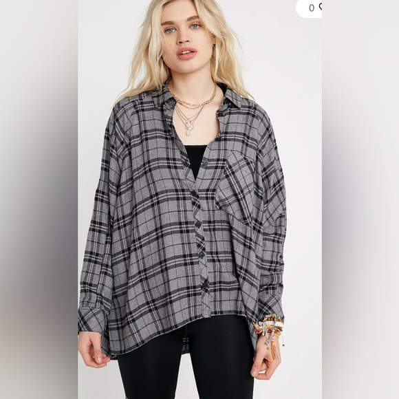Oversized flannel shirt crafted in a super soft material in a drapey, button-through silhouette. Topped with all the classics: a pointed collar, pocket at the chest and button-down cuffs. Finished with raglan-style long sleeves. Only at Urban Outfitters.